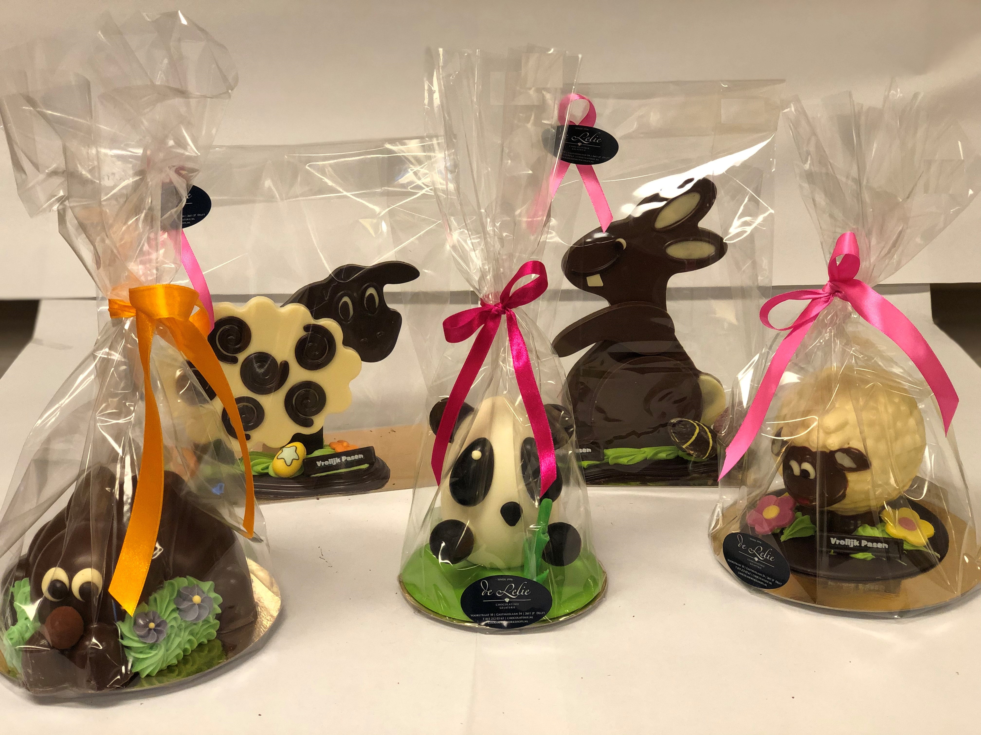 Leuke verschillende Paasdieren. In melk en puur verkrijgbaar.