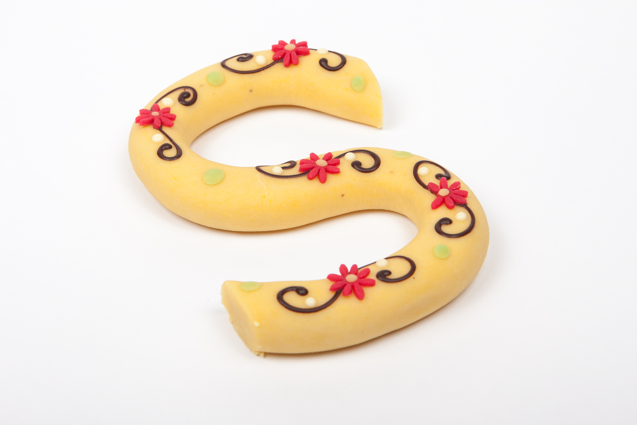 De marsepeinen letters zijn alleen af te halen in de winkel omdat deze niet heel aankomen met de bezorgdienst.