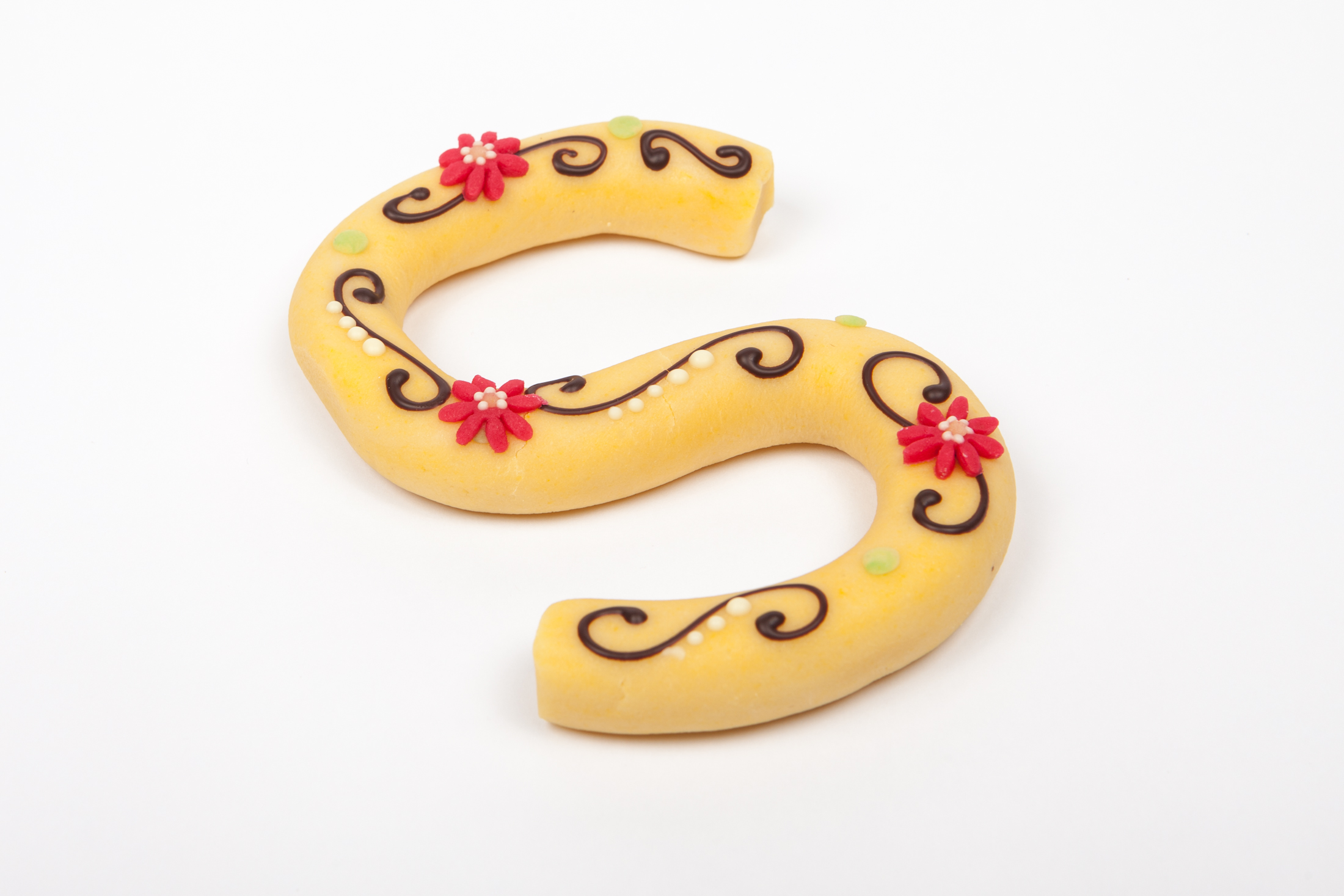 De marsepeinen letters zijn alleen af te halen in de winkel omdat deze niet heel aankomen met de bezorgdienst.